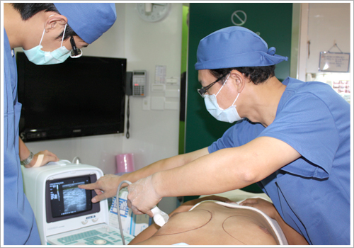 ▲手術前進行精密的超因波掃描,看出您乳腺及脂肪厚度。